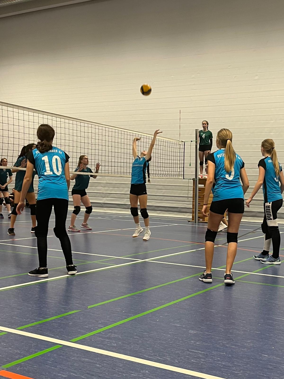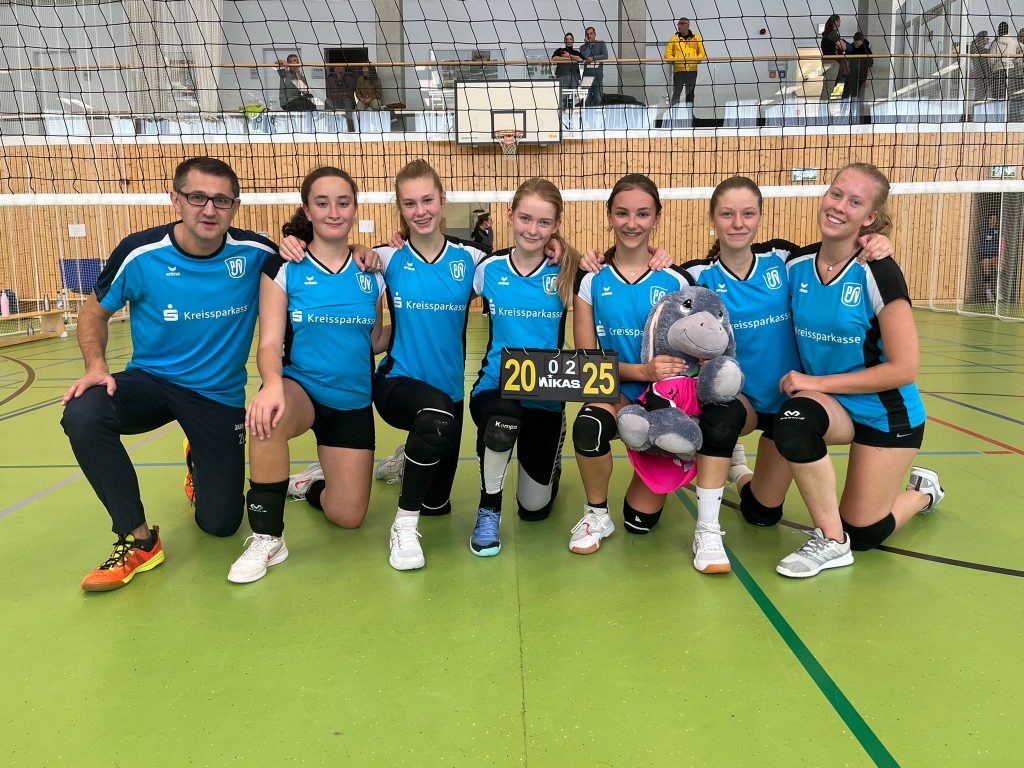 Die superenglische Woche begann für unsere U16 am 12. November mit dem Damenspieltag (dahoam) in der D3-Kreisklasse. Ja, genau, unsere U16 spielt in einer Damenliga. Die Debütantinnen der D3 sind sehr motiviert in der eigenen, gut gefüllten Halle ins Spiel gestartet. Und sie haben ein gutes Spiel gezeigt. Zwar wurde die Punkteanzeigetafel auf unserer Seite nicht so schnell geblättert wie auf der Seite der Gäste, aber es gab viele ordentliche Angriffe, schöne Aufschläge, Blocks und Abwehraktionen zu sehen. Die Zuschauer haben ihre Termine am Samstag Nachmittag spontan abgesagt, um die spannenden Ballwechsel zu bewundern. Manchen blieben wegen der Kuchen und Getränke, aber auch sie kamen voll auf ihre Kosten (Danke an die Eltern / OrgKomittee).