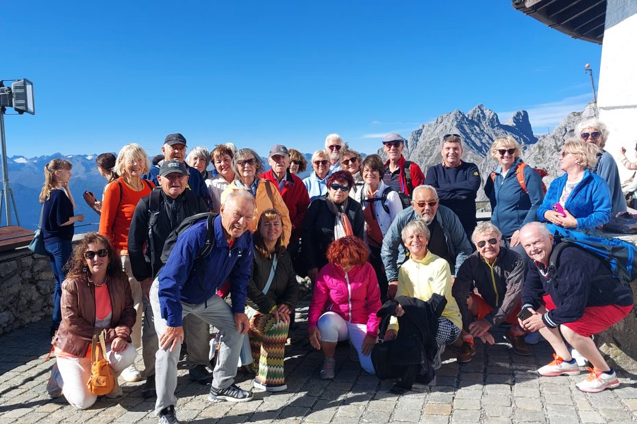 Hervorragender Service, vorzügliches Essen und Getränke bringen uns zum Schwärmen. Früher oder später marschieren wir zufrieden zurück zum Hotel. Am Sonntagmorgen nach dem Frühstück fährt uns der Bus zur Hungerburgbahn. Zunächst gondeln wir zur Seegrubenbahn und steigen um in die Hafelekarbahn aufs 2.300m hohe Hafelekar. Der atemberaubende Blick auf das Karwendel und die Stadt Innsbruck ist für alle ein besonderes Erlebnis. Und veranlasst uns, ein Gruppenfoto zu machen.