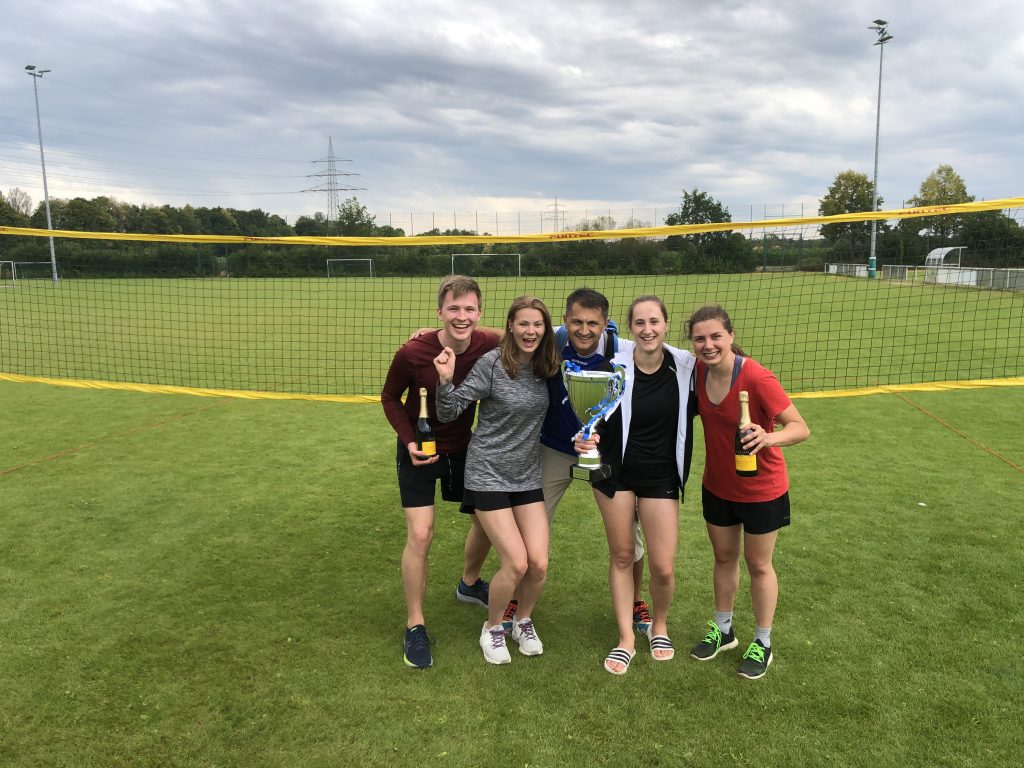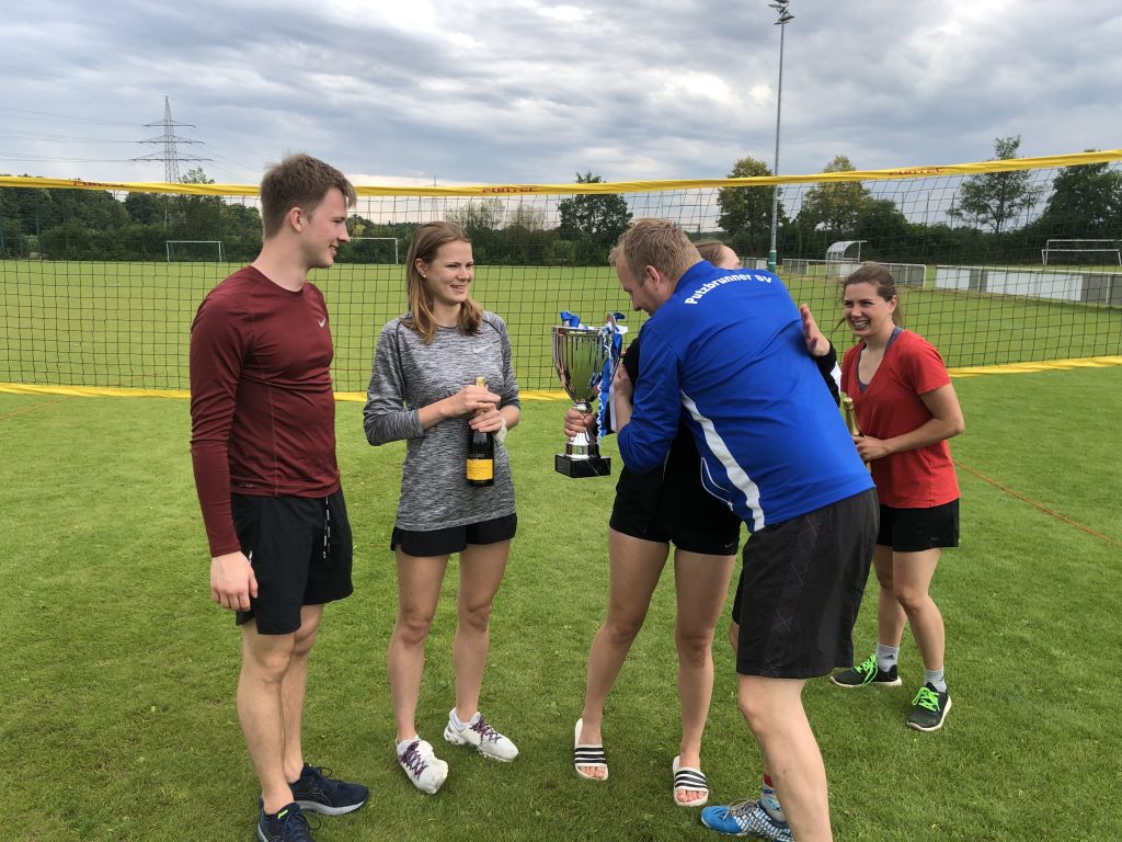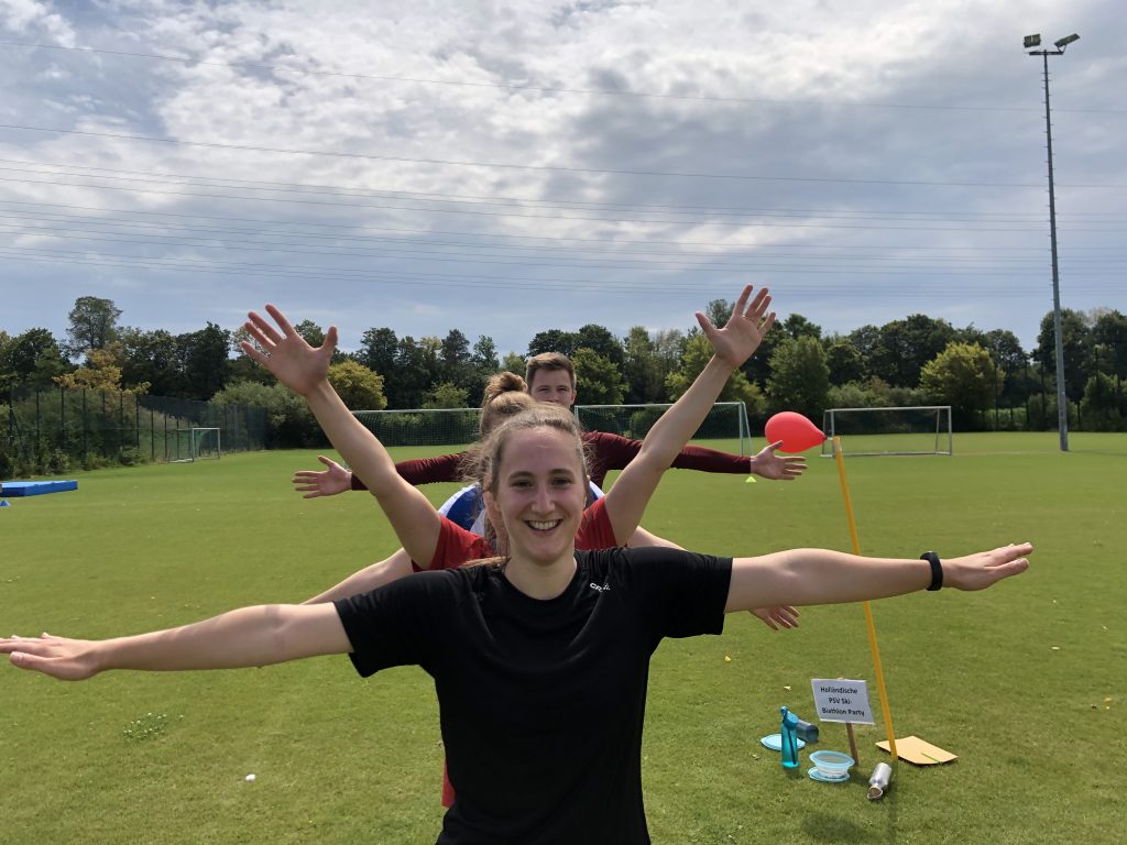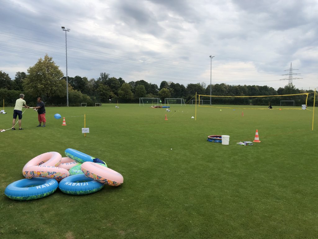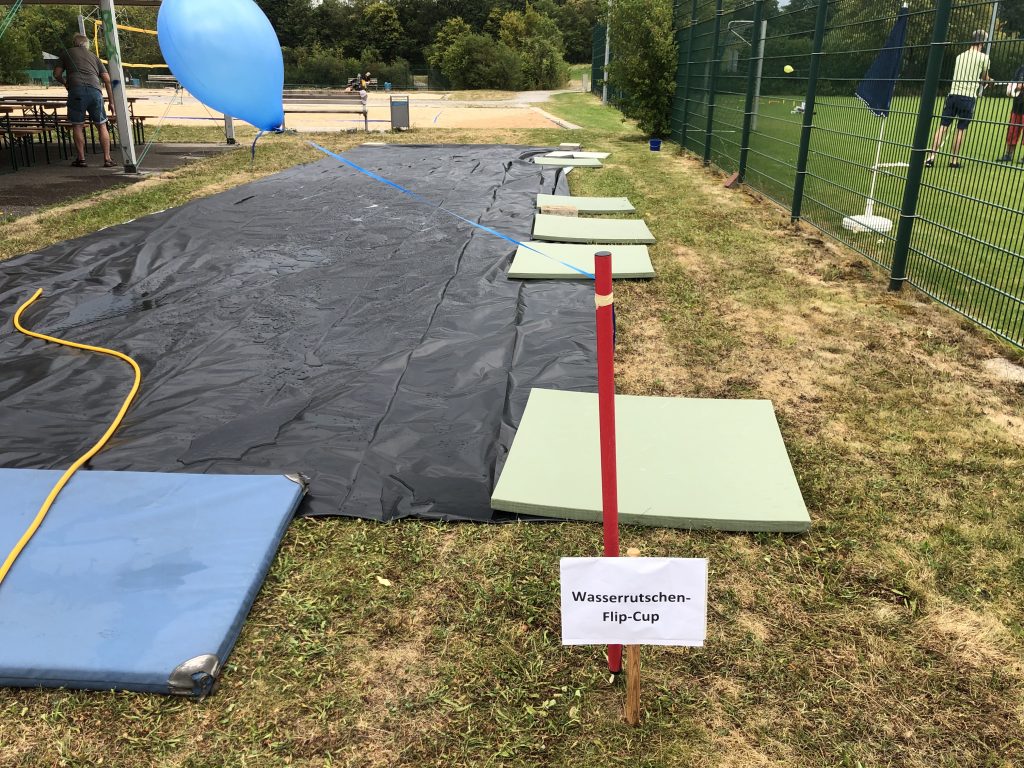 Übrigens, hier die Stationen – taucherbrillenspielwasserrutschenflipcupnagelpupsenwasserbombenelfmeterschießenlöschzugffwpsvschieferturmvonputzbrunnholländischepsvskibiathlonpartygymnastikballschlangen – waren sehr anstrengend und erinnerten an ein intensives Intervalltraining der Zehn- bzw. Siebenkämpfer(innen). Man konnte sich vor lauter Ausschnaufen der Teams nach Durchlaufen (oder durchkriechen, je nachdem) der Stationen nicht mal in Ruhe unterhalten. Bei den 10-minütigen Belastungsphasen und 3-minütigen Pausen war ein Kollaps der Athleten klar vorprogrammiert. Vermutlich hat die H1D3 den Ablauf nicht ganz verstanden oder nicht richtig eingeschätzt. Sie haben sich einfach entschieden, auf das Kollabieren zu verzichten. Und das war das eigentlich Anstrengende für den sog. Riegenführer (Riegenführer: Freiwillige vom Dorf, die Punkte bei den Stationen zählen mussten; mehr war von den Riegenführer nicht verlangt!!!). Wenn man als Riegenführer damit rechnet, daß die Volleyballer (das soll ja an sich keine anstrengende Sportart sein) max. 25 Punkte pro Satz machen, und dann doch 381 Striche bei der Wasserbombenschlacht machen muß, dann ist das echt nervig. Sie haben nur bei einer Station nicht obsiegt – beim Fußball. Komisch, denn Volleyballer sollen wiederum ein gutes Ballgefühl haben.