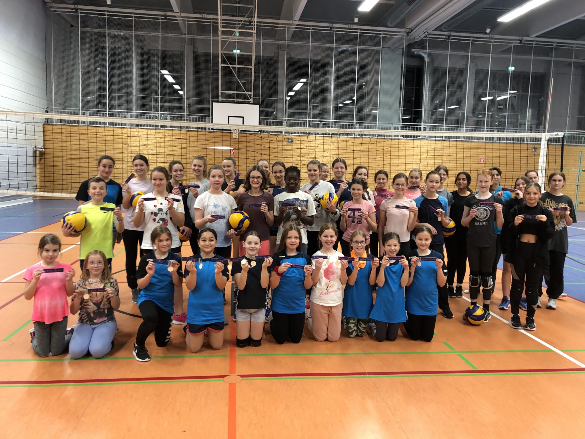 Genau, es sind die Volley Queens, die die Sporthalle zu Putzbrunn regelmäßig zweimal die Woche zum Beben bringen (und wenn es sein muß, auch mal drei oder vier mal bzw. woanders). Naja, eigentlich wußten sie es bis zur Krönung am 8. Dezember nicht. Und alle, die in die geheime Inthronisierung involviert waren, haben zum Glück dicht gehalten. Nachbarn, die unter dem regelmäßigen Lärm (wir berichteten mehrmals von den gemessenen als 113,1 dB), haben es zu spät mitbekommen und wollten sich auch nicht beschweren.