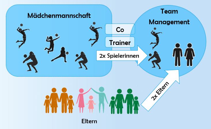 Nun wurde im PSV ein neues Konzept geschaffen, das im Volleyballbereich seinesgleichen sucht. Jede Mädchenmannschaft bekommt ein eigenes Team Management, an dem sich zwei Eltern und zwei Jugendspielerinnen beteiligen. Sozusagen ein Orga-Team, das die Aufgaben rund um die Mannschaft koordiniert und mitgestaltet. Aktionstage, Feste, Heimspieltage, schicke Trikots, andere Wünsche – all das liegt in der Hand des Team Managements. Und klar – sie werden von der Trainerin unterstützt, die sich weiterhin um volleyballspezifische, sport-fachliche Themen kümmert.